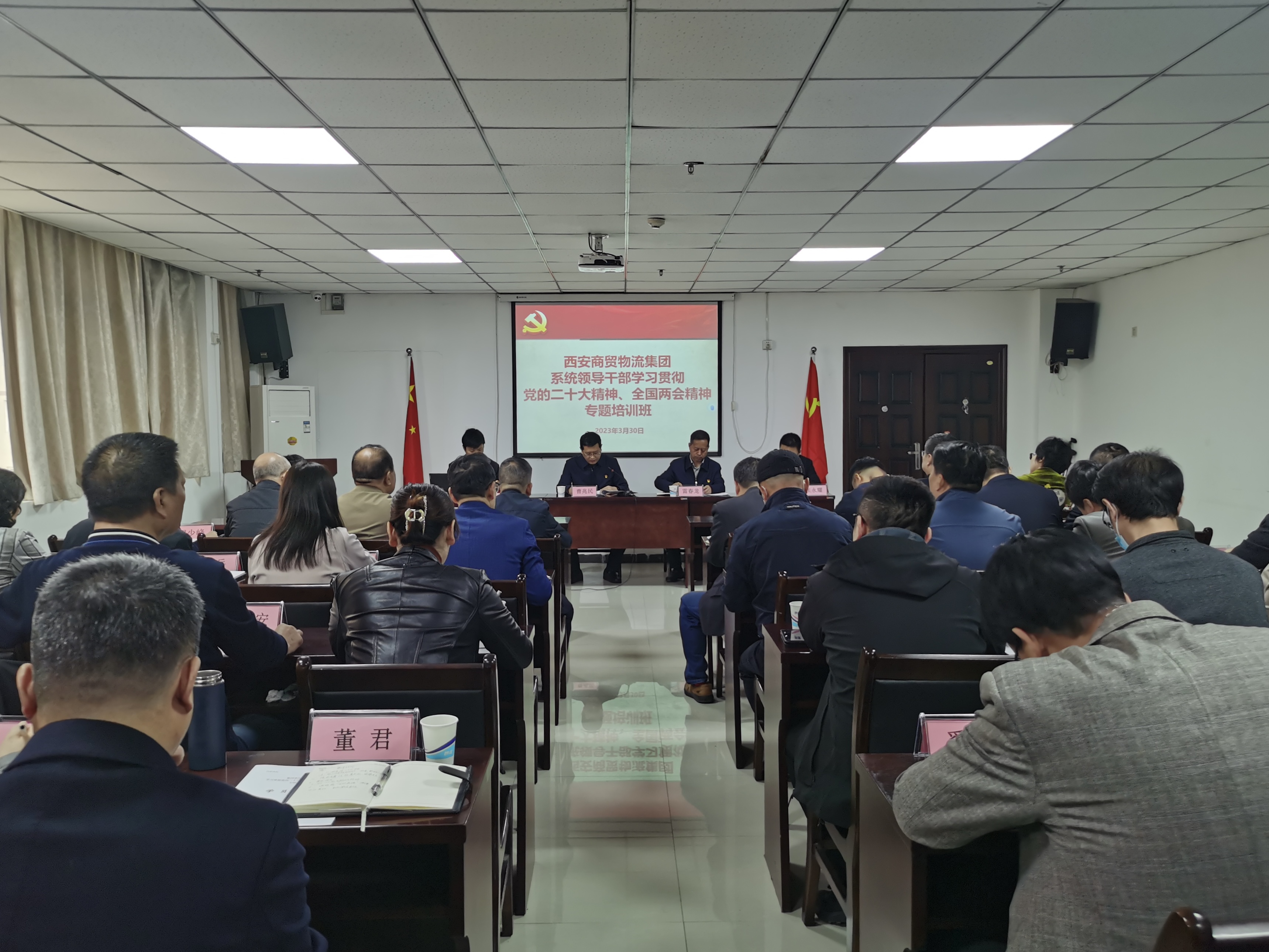 3月30日上午,系統黨員領導干部學習貫徹黨的二十大及全國兩會精神專題培訓班在西安市物資職工中等專業學校舉行。總部各部門負責人、各單位領導班子成員參加培訓。開班儀式上,集團黨委書記、董事長曹兆民做了開班動員講話。他指出,學習貫徹黨的二十大及全國兩會精神,是當前和今后一個時期的首要政治任務,參訓學員作為集團黨的建設和經營發展的“關鍵少數”,要珍惜這次集中培訓的機會,深刻領悟,學有所得、學有所思、學有所悟,要以上率下“帶起來”、結合實際“融起來”,方式方法“實起來”,在政治過硬提升本領上見成效、在圍繞中心服務大局上見成效、在清廉建設增強活力上見成效,以“時時放心不下”的責任感、“事事落實到位”的執行力,以“持續改進、追求卓越”的良好作風,學習落實好黨的二十大及全國兩會精神,在打造服務產業發展和民生保障的大型現代商貿物流投資集團的事業中取得新的更大成績。